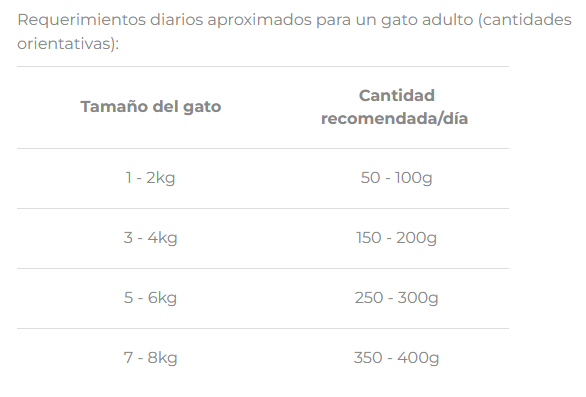 Aditivos nutricionales (por kg): Taurina 4g, vitamina E 60mg (de origen natural)